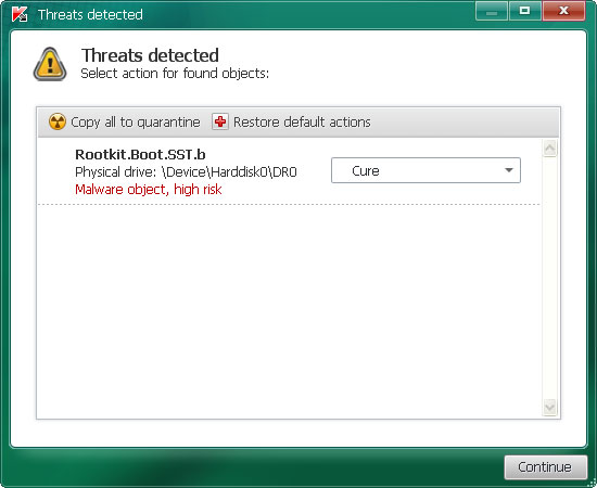 2. Download TDSSKiller and run a system scan. Remove found rootkits as shown in the image below. Reboot your computer if required.